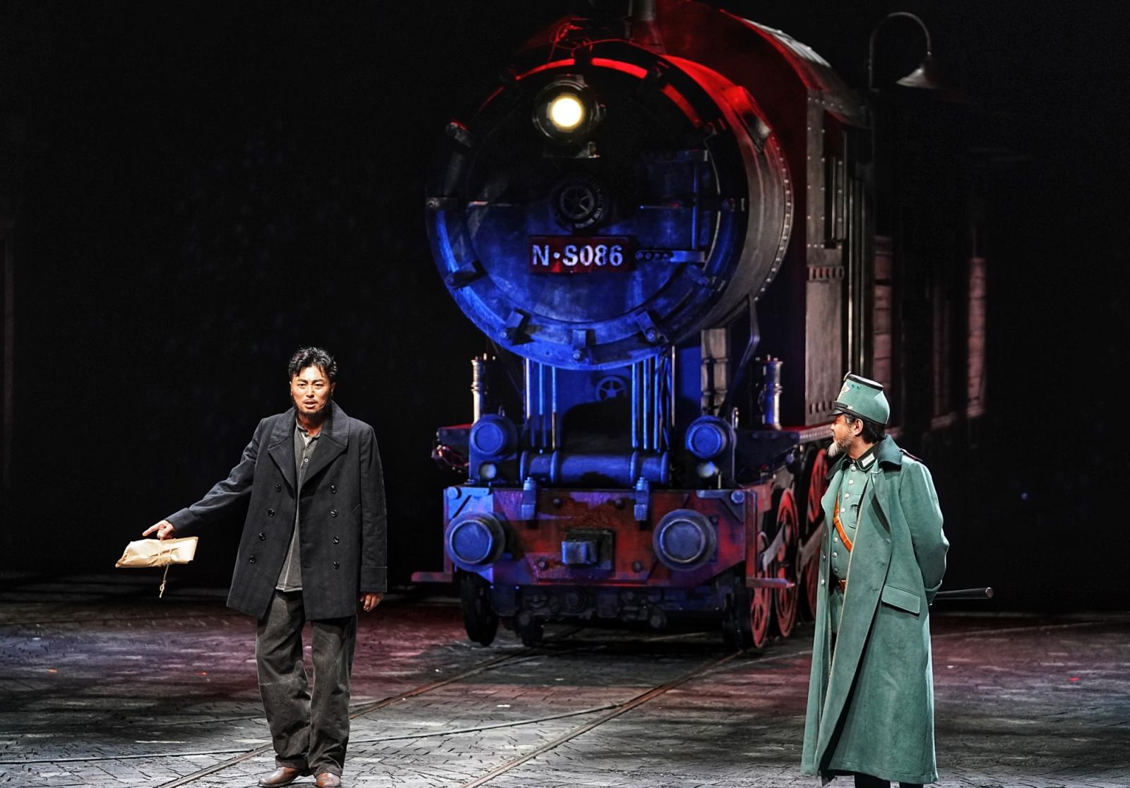 急促的鸣笛声划破黑暗,一列闪着火光、卷着白烟的蒸汽火车从舞台深处缓缓驶出大满贯APP,以极强的压迫感带来一段笼罩在二战阴云下的故事。9月6日,北京人民艺术剧院新排反战剧目《屠夫》在北京国际戏剧中心·曹禺剧场首演。作为纪念中国人民抗日战争暨世界反法西斯战争胜利80周年优秀舞台艺术作品展演的参演剧目,《屠夫》以戏剧的形式唤起观众对和平的珍视、对战争的警惕。