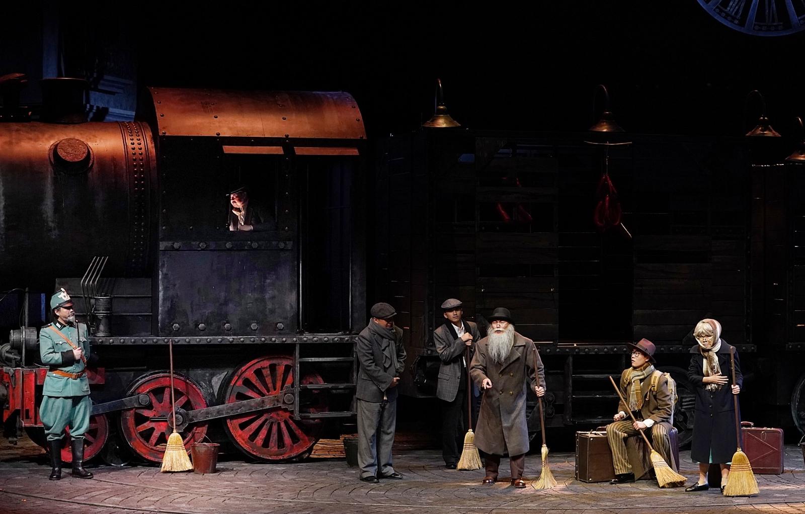今年,为纪念中国人民抗日战争暨世界反法西斯战争胜利80周年,北京人艺再次重排《屠夫》,由何冰担任导演,带领青年演员阵容亮相北京国际戏剧中心·曹禺剧场。舞台上,一座巨大的火车装置如同时光机器,连接起人艺三代演员的戏剧情。