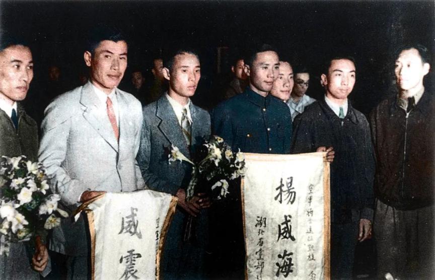 不同于出征时的悄然无息,此刻的王家墩机场人山人海,锣鼓喧天。国民政府行政院长孔祥熙、军政部长何应钦,中共中央和八路军驻武汉办事处代表周恩来、陈绍禹、吴玉章、罗炳辉等都亲自来到机场迎接。兴奋的人群直接将8位“飞将军”抬到了机场总站前,接受人群的欢迎。